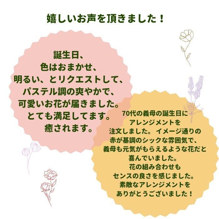 花材の内容は毎回異なります。ご注文後にお届けする際は、