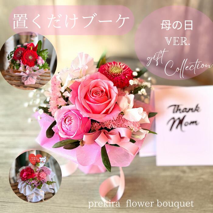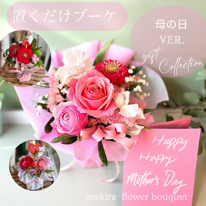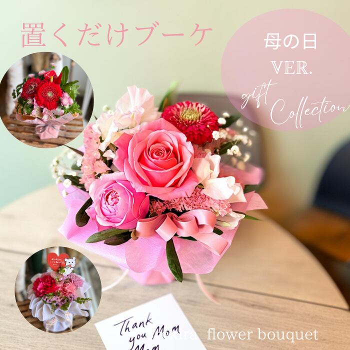 この置くだけブーケは、ご自宅用としてももちろん、プレゼントにもぴったりです。感謝の気持ちを込めたフラワーギフトで、特別な母の日を演出してみてはいかがでしょうか。