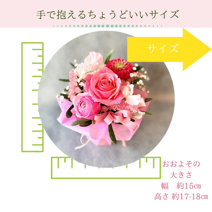 - 風合い豊かな花材を使用しており、鮮やかな色合いでギフトの特別感を演出します。